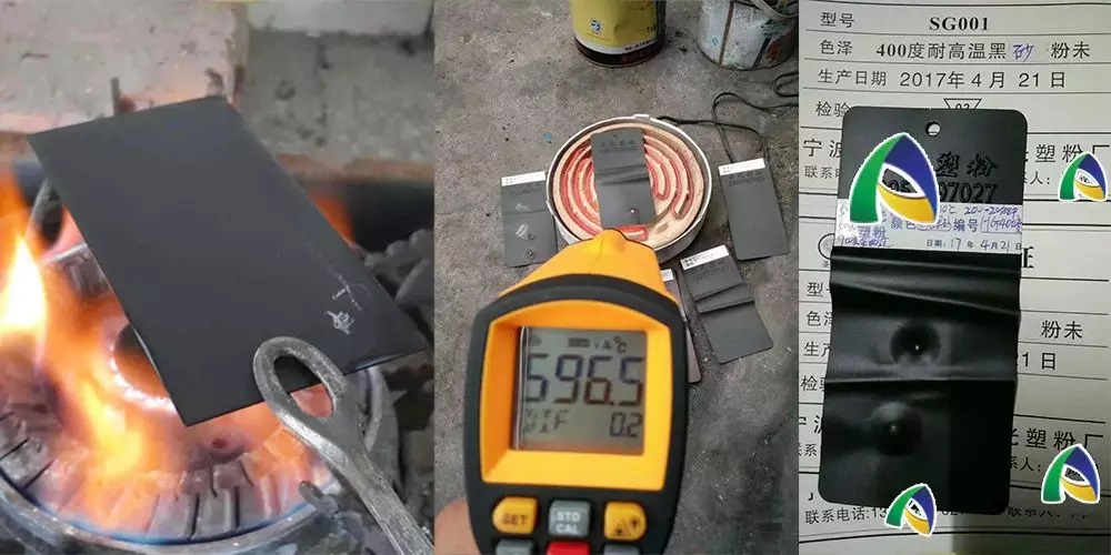 2.有机配方:以树脂为载体,低熔点玻璃粉只是作为功能填充料潜伏在这个涂料油漆油墨里面,一般占这个配方总组份的16~22%左右,其他的工艺该怎么做还是怎么做。形象的来说,低熔点玻璃粉就像地下党潜伏在里面,你温度不来我是不起作用的,可以就当我是填充粉。比如烧烤炉用到这个GT40,在400度左右它是不起作用的,往往你点火一烧,常温常压下火焰的温度就达到650度左右了,再加点时间下去,低熔点玻璃粉就开始熔,就会跟树脂自由基一样的,跟塑料的阻燃机理也是同理。跟它反应,一反应就开始降温,一降温就结块,形成一个绝氧的隔离层,把氧气给隔断了,使得里面树脂无法跟氧气发生反应,而里面的树脂依然附着在金属上面,没有造成脱落,相当形成了一个保护层保护树脂不会被烧掉。因此这种一般用明火去烧的,基本上可以肯定它的涂层是黑色的,因为树脂里面有碳,高温之后就碳化成黑色了!